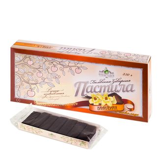 Состав: сахар-песок, патока, пюре яблочное, вода питьевая, шоколадная глазурь, природный структурообразователь-пектин яблочный, белок яичный, молочная кислота, ваниль.