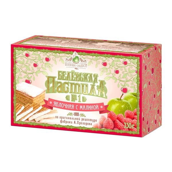 | Состав: | Малина, печеные яблоки, сахар-песок, белок яичный. |