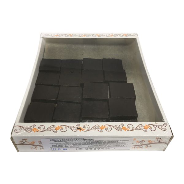 Состав: сахар, глазурь шоколадная (какао-масло, какао-порошок, эмульгатор-лецитин), патока, сливочное масло, молоко цельное сгущенное с сахаром, агар, белок яичный сухой, кислота лимонная, ароматизатор "Ваниль".