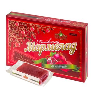 Сахар - песок , пюре яблочное,патока,вода,пектин яблочный,сахарная пудра,цитрат натрия,лимонная кислота,концентрированный гранатовый сок. |